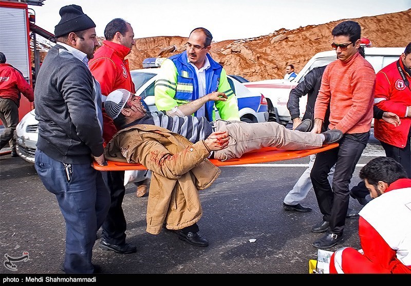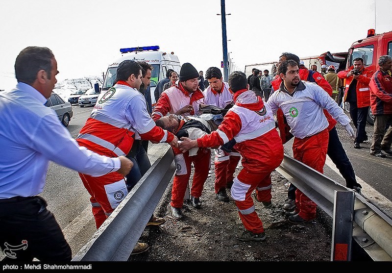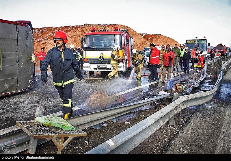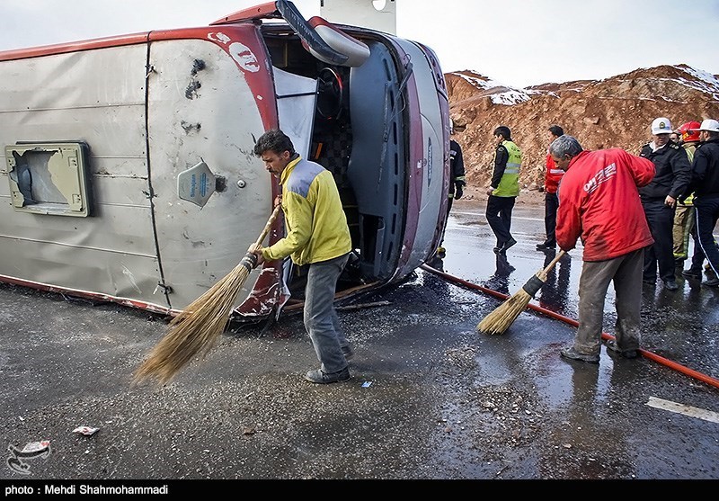 18 مجروح در واژگونی اتوبوس-اتوبان تهران قم