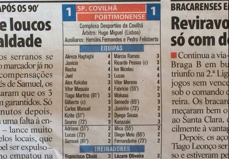 در این دیدار علیرضا حقیقی دروازهبان تیم ملی ایران 90 دقیقه درون دروازه کویلیا ایستاد و عملکرد او باعث شد روزنامه رکورد پرتغال که یکی از معتبرترین نشریات این کشور است، از 5 نمره به حقیقی نمره 4 بدهد.