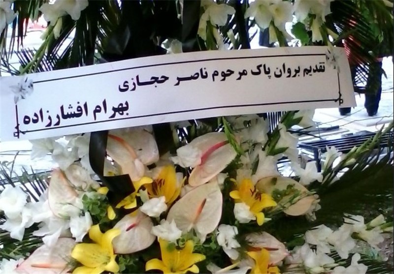 * عده زیادی از هواداران ناصر حجازی با لباسهایی که روی آن عکس دروازهبان پیشین تیم ملی بود، در مراسم حاضر شدند.