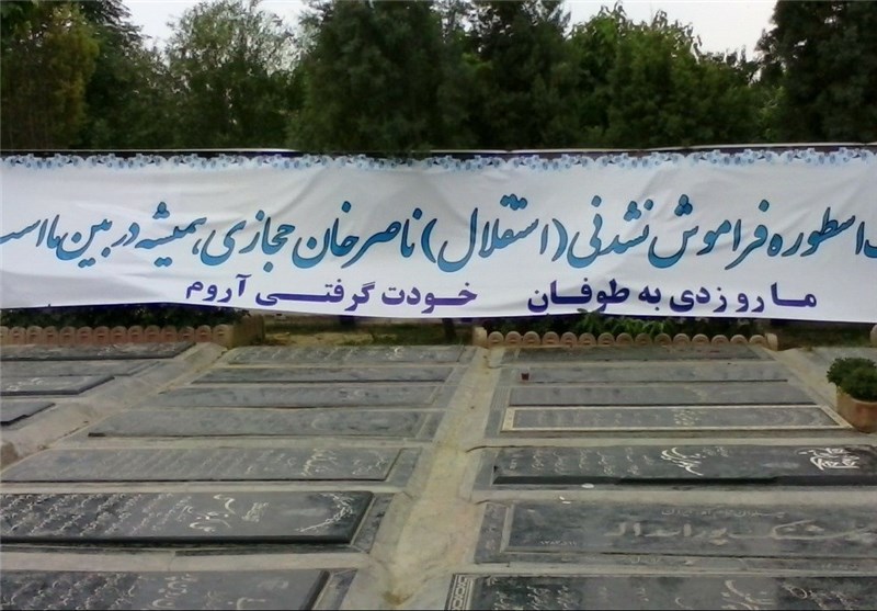 * در قطعه نام آوران بنرهای زیادی با عکسهای ناصر حجازی نصب شده بود که روی یکی از بزررگترین این بنرها نوشته بودند «روح بزرگ اسطوره فراموش نشدنی (استقلال) ناصر خان حجازی، همیشه در بین ما است. ما رو زدی به طوفان، خودت گرفتی آروم.»