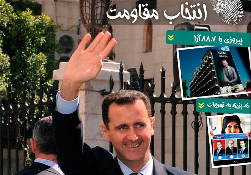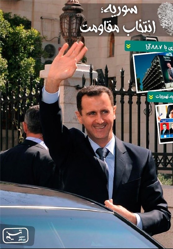 خبرگزاری تسنیم: مردم سوریه گزینه مقاومت را برگزیدند و بشار اسد در انتخابات سوریه با کسب 88.7 آرا به پیروزی رسید.