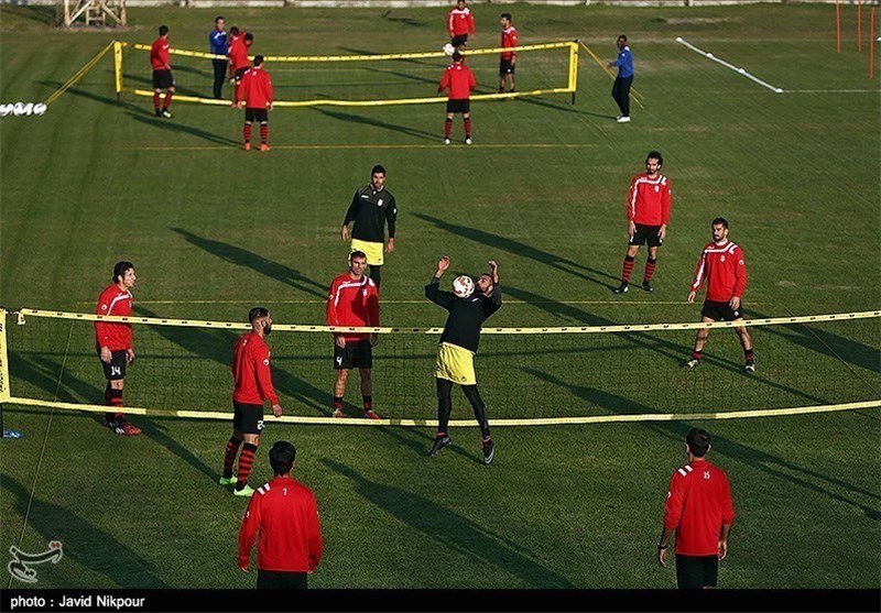 * قبل از آغاز تمرین بازیکنان در گروههای مختلف به بازی تنیس فوتبال پرداختند.