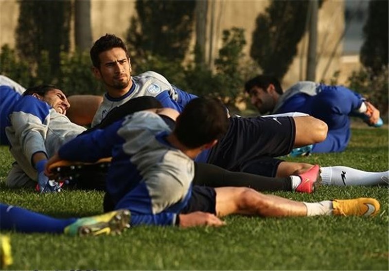* محور تمرین امروز آبیپوشان دویدن دور زمین، بازی آقاوسط و فوتبال درون تیمی در دو گروه سبز و نارنجی بود.
