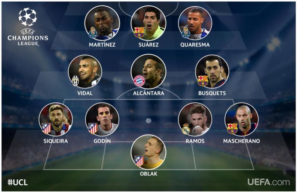 مهاجمان: جکسون مارتینس (پورتو)، لوئیز سوارز (بارسلونا) و ریکاردو کوارشما (پورتو)