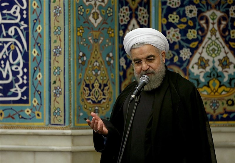 روحانی با بیان "امروز نیز در یک مقطع تاریخی دیگر در برابر امتحان بزرگ الهی قرار داریم" اعلام کرد: ملت ایران در برابر این امتحان الهی نیز از سختی مسیر نهراسید و در مقابل همه سختیها و مشکلات، ایستادگی کرد و تواناترین مذاکرهکنندگان خود را برای حل و فصل مسئله به صحنه فرستاد.