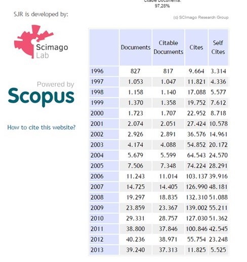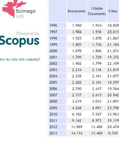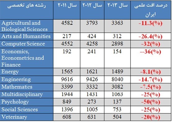 همان‌گونه که در جدول بالا می‌بینیم، در سال 2013 افت علمی کشور در برخی رشته‌ها در این نمایه به نزدیک 50 درصد رسیده است.