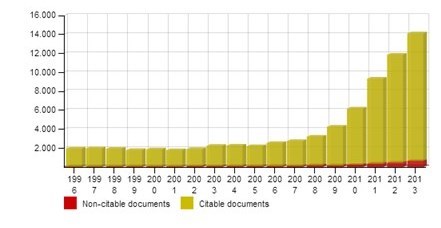 افت تعداد مستندات در سال 2013 به‌نسبت سال ماقبل، در شکل فوق به‌درستی مشخص شده است.