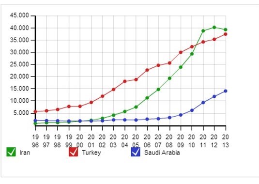 از سوی دیگر در نمودار رشد علم می‌بینیم که کشور ترکیه در صورت حفظ افت علمی ایران، به‌زودی از ایران در نمایه Scopus هم سبقت خواهد گرفت و عنوان اولین را در منطقه خاورمیانه به خود اختصاص خواهد داد.