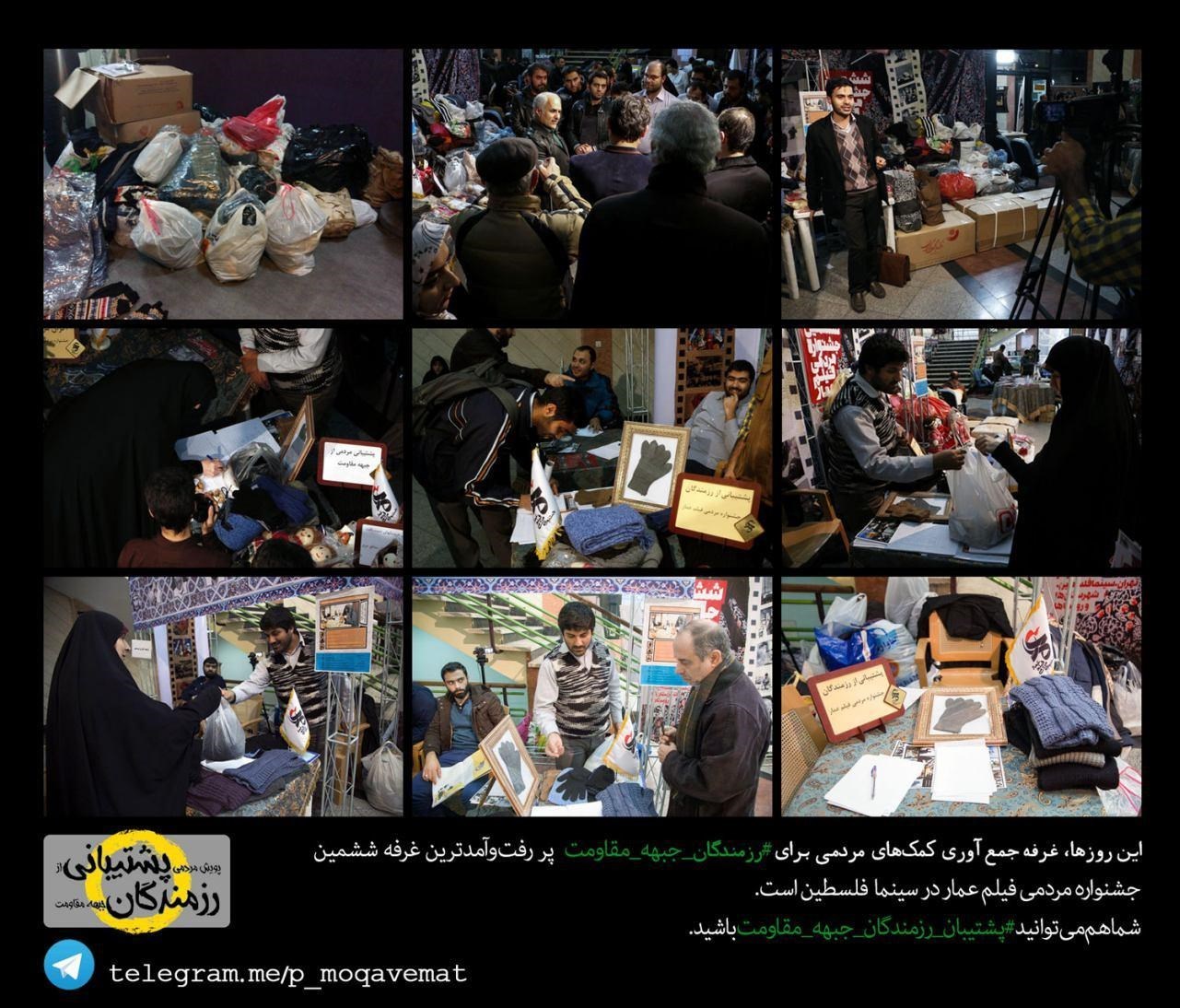 به گزارش خبرگزاری تسنیم، با اعلام فراخوان «ننه عصمت» و همزمان با آغاز اکران عمومی آثار ششمین دوره جشنواره مردمی فیلم عمار در سینما فلسطین و سایر نقاط اکران مردمی جشنواره عمار در سراسر کشور، اقشار مختلف مردمی، خانواده شهدا، هنرمندان و شخصیتها با حضور در این محلها کمکها و البسه گرم مثل دستکش، شال، کلاه و ... خود را برای پشتیبانی از رزمندگان مقاومت و مدافعان حرم اهل بیت (ع)، اهدا می کنند.