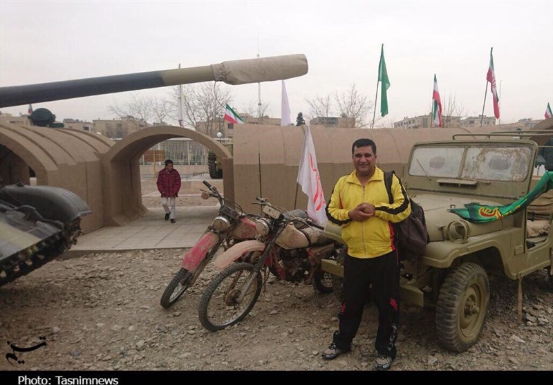 بصیری در پاسخ به سئوالم مبنی بر اینکه به تنهایی سفر میکند، گفت: من تنها نیستم، 72 شهید همراه من هستند.