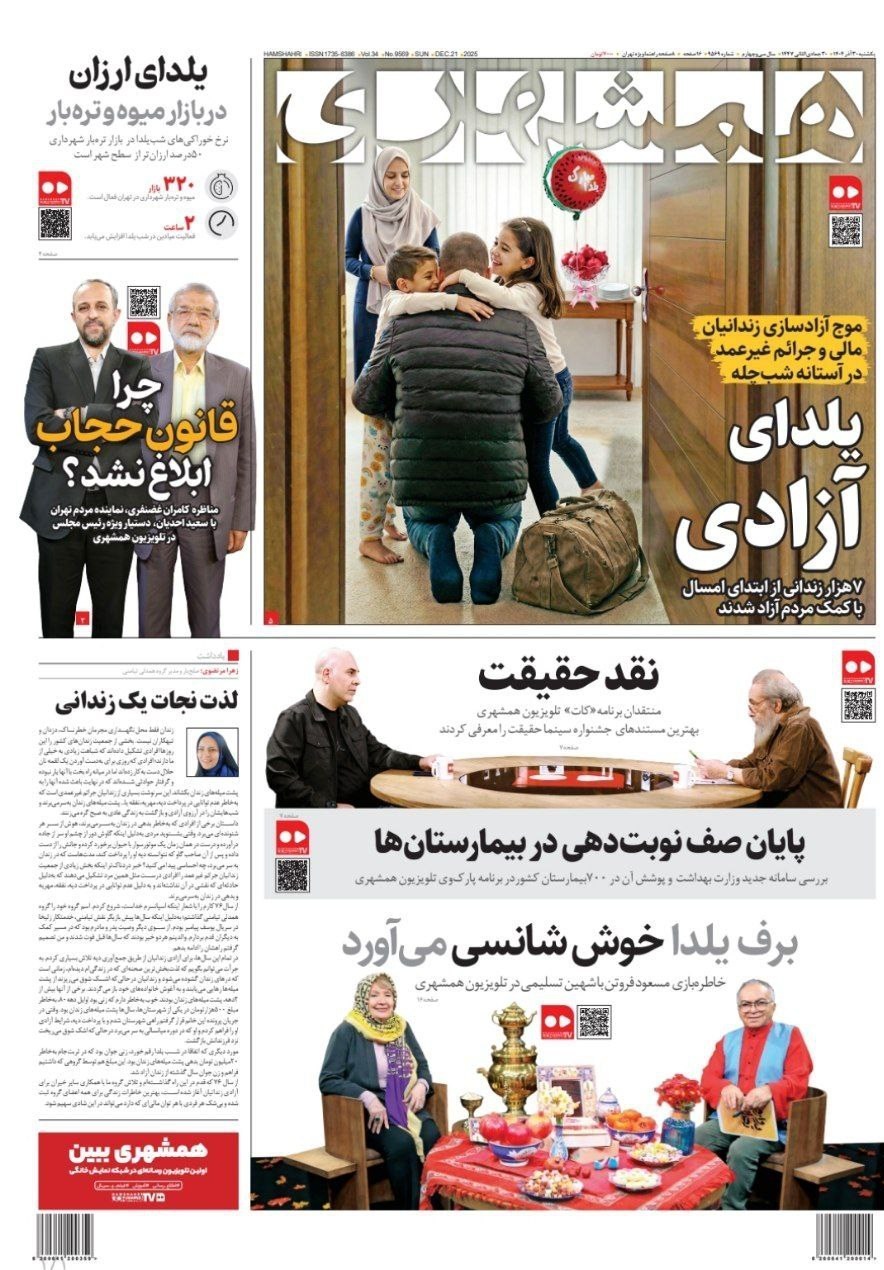 صفحه اول مطبوعات یکشنبه 30 آذر/مرحبا حنظله!