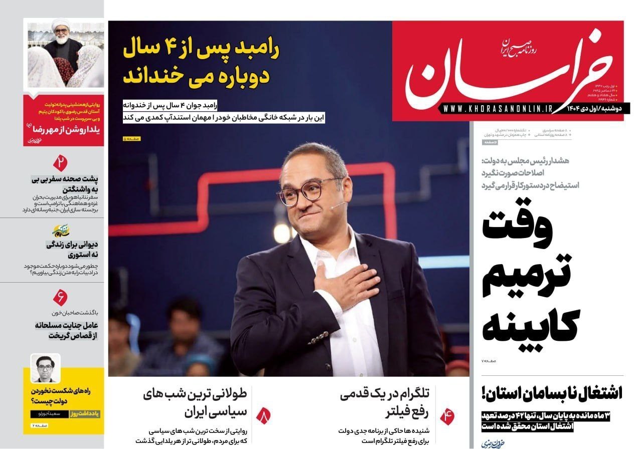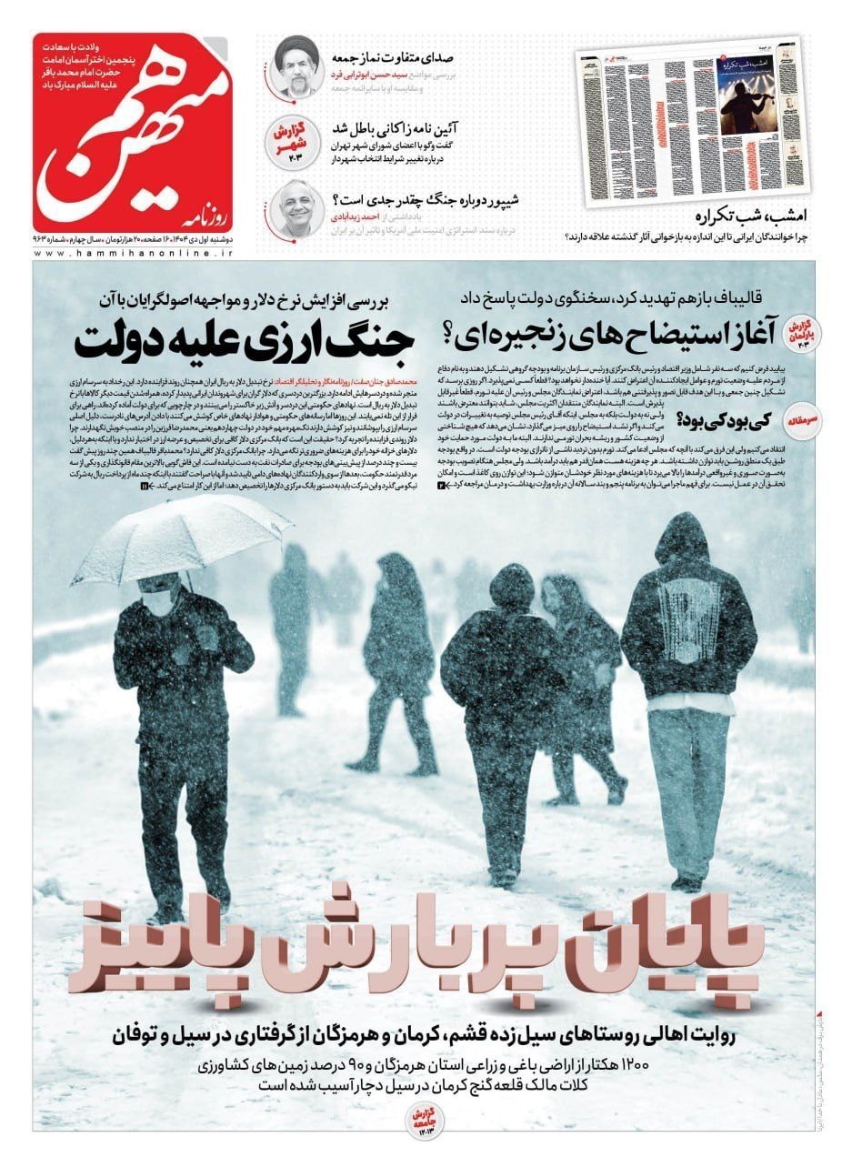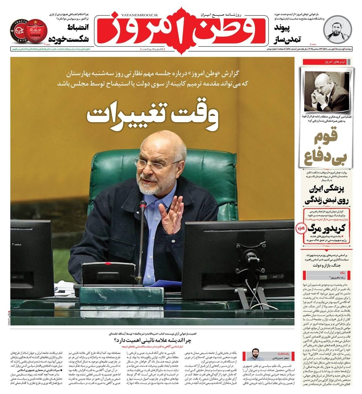 صفحه اول مطبوعات دوشنبه 1 دی/وقت ترمیم کابینه