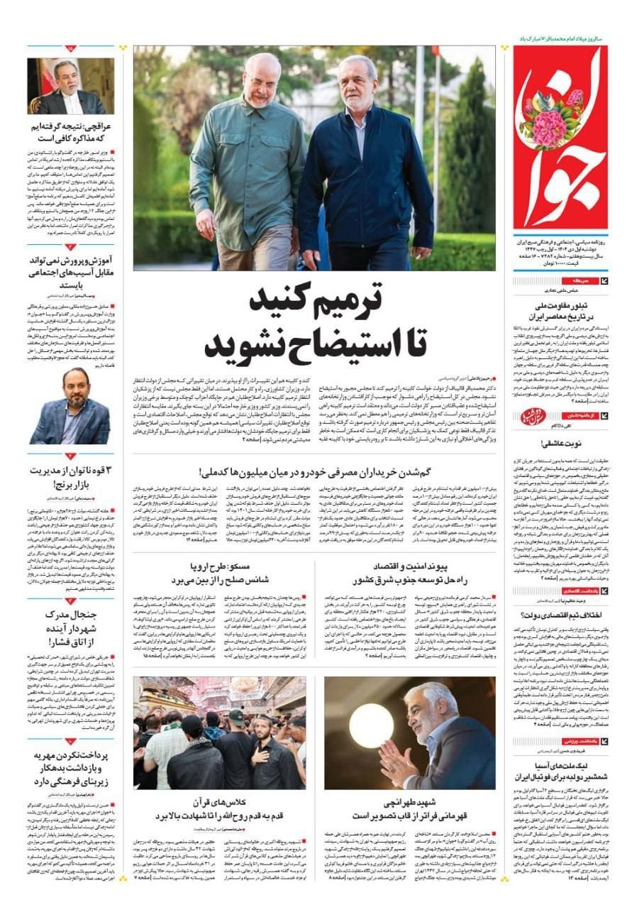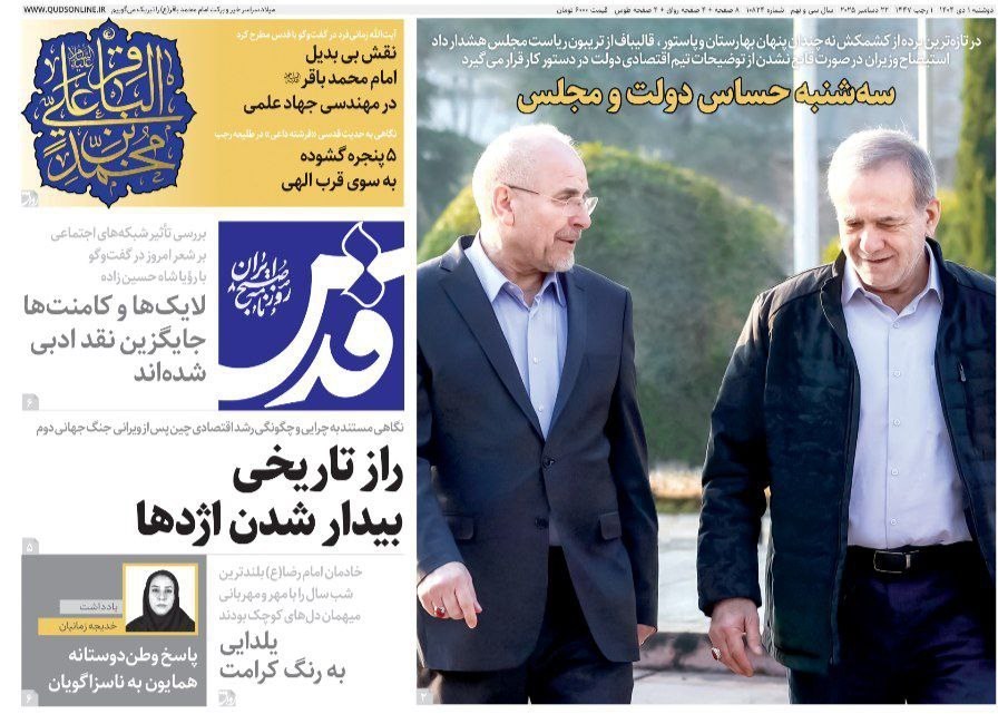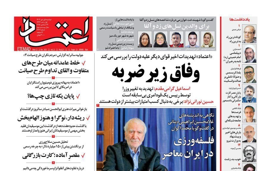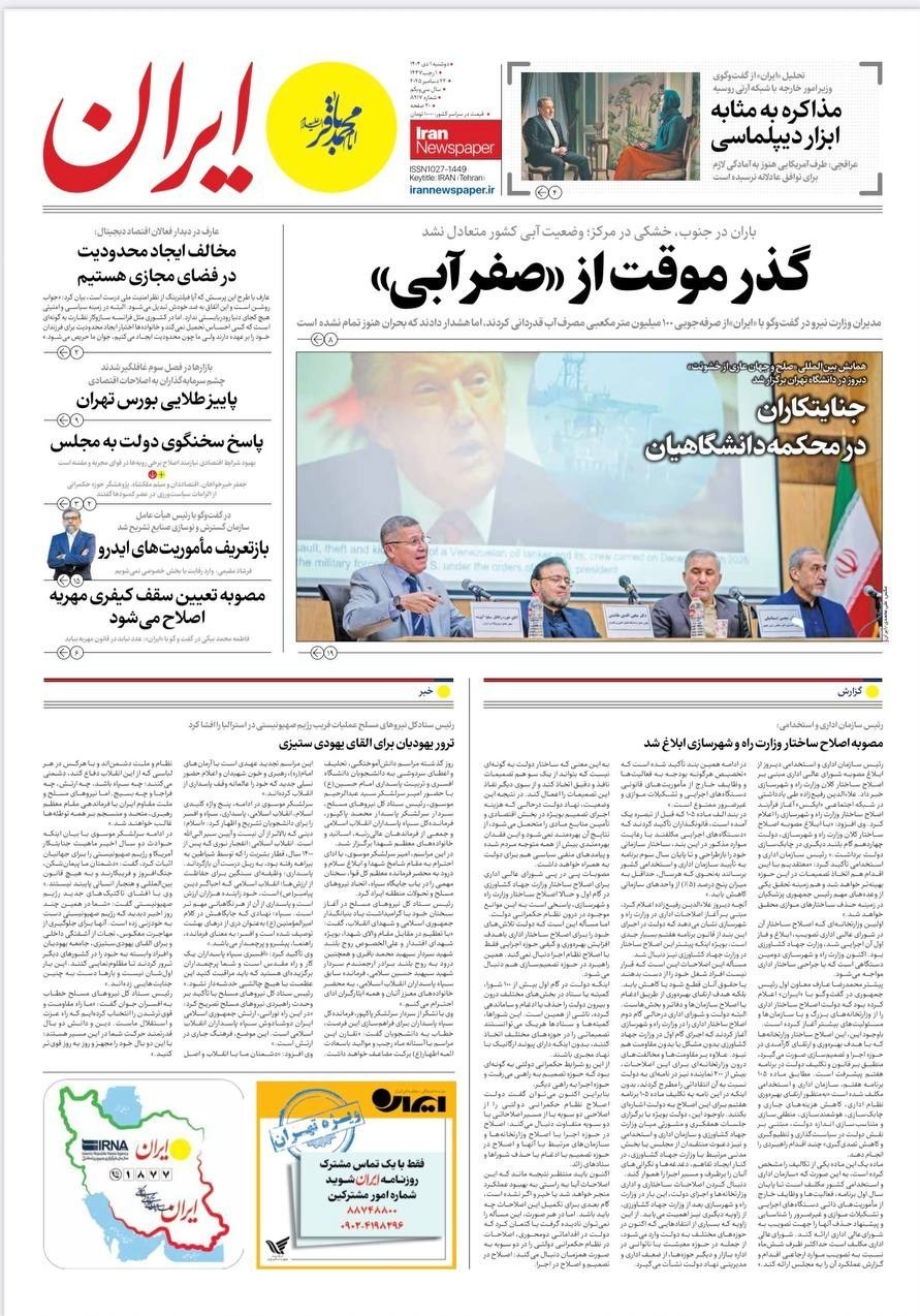 صفحه اول مطبوعات دوشنبه 1 دی/وقت ترمیم کابینه