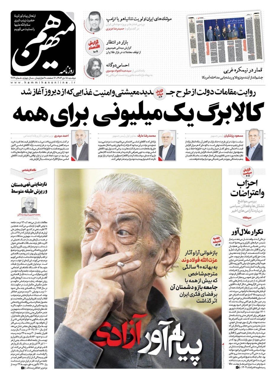 تصاویر منتخب صفحات نخست روزنامه‌های دوشنبه 15 دی منتشر شد.