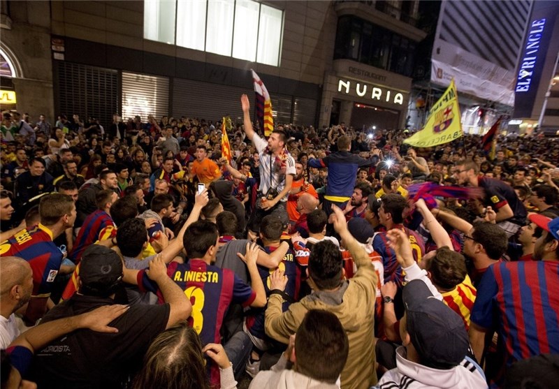 هوادران باشگاه بارسلون، پس از پیروزی این تیم بر آتلتیکو مادرید و قهرمانی در لالیگا، در میدان لارامبلا، تجمع کرده و به جشن و پایکوبی پرداختند.