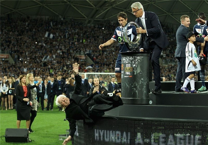 فرانک لووی، رئیس فدراسیون فوتبال استرالیا هنگامی که میخواست جوایز قهرمان لیگ سری «آ» این کشور در سال 2015 را اهدا کند، از روی سکو به پایین افتاد.
