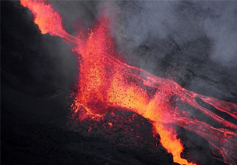فوران ماگما از آتشفشان پیتون دلا فورنایس در جزیره ریونیون فرانسه در اقیانوس هند.