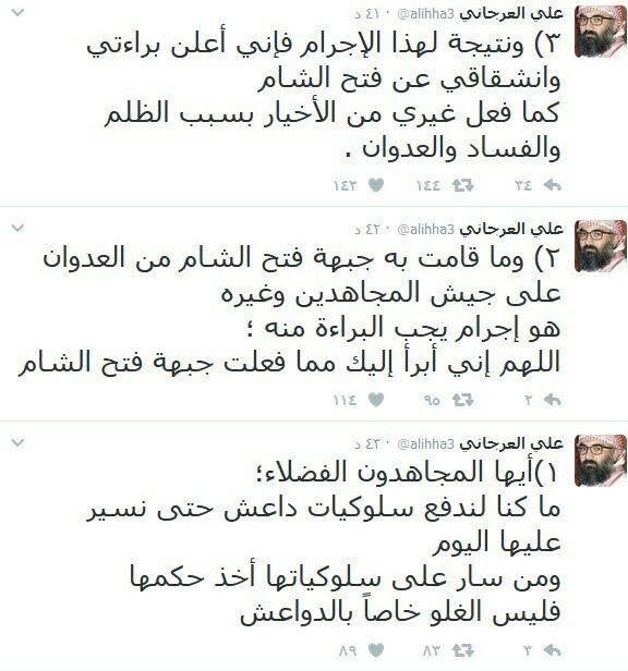 في حين أعلن أحد شرعيّ، "جبهة النصرة" المدعو "ماجد الراشد" الملقب بـ "أبو سياف" عبر حسابه الرسمي على موقع "تويتر" انشقاقه عن "جبهة النصرة".