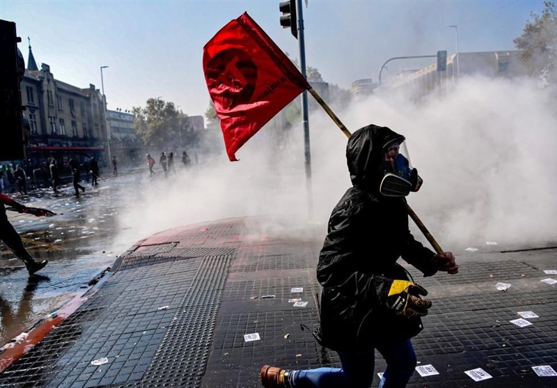 The shooting occurred during a Sunday March called by a union in the capital Santiago as some protesters erected barricades and entered commercial premises, clashing with merchants.