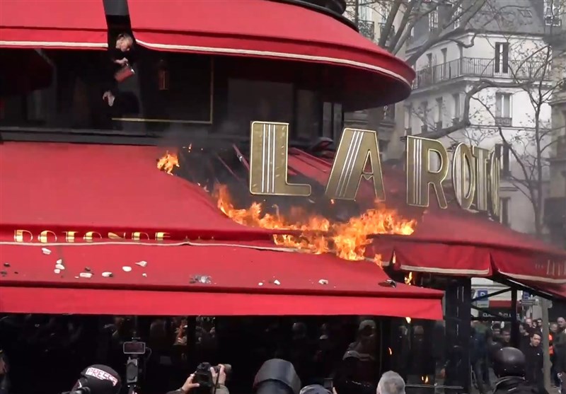 A bistro, known locally as one of President Emmanuel Macron’s favourite restaurants, was briefly set alight on Thursday, as protests against the leader’s pension reforms continued in Paris.