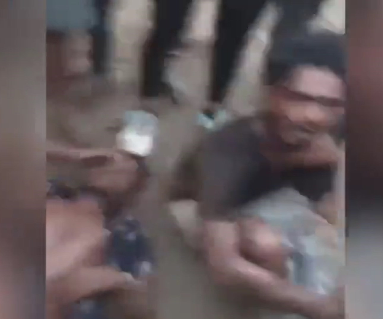 Visuals shared on various Twitter accounts depict a damaged car and two young men lying on the road, bleeding.