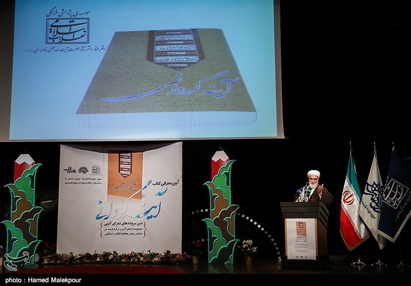 مراسم رونمایی از کتاب مجموعه اشعار آئینی ارائه شده در محضر رهبر معظم انقلاب با عنوان آینهگردانی عصر روز شنبه 28 آذر با حضور حجتالاسلام محمدی گلپایگانی رئیس دفتر مقام معظم رهبری در تالار سوره حوزه هنری برگزار شد.