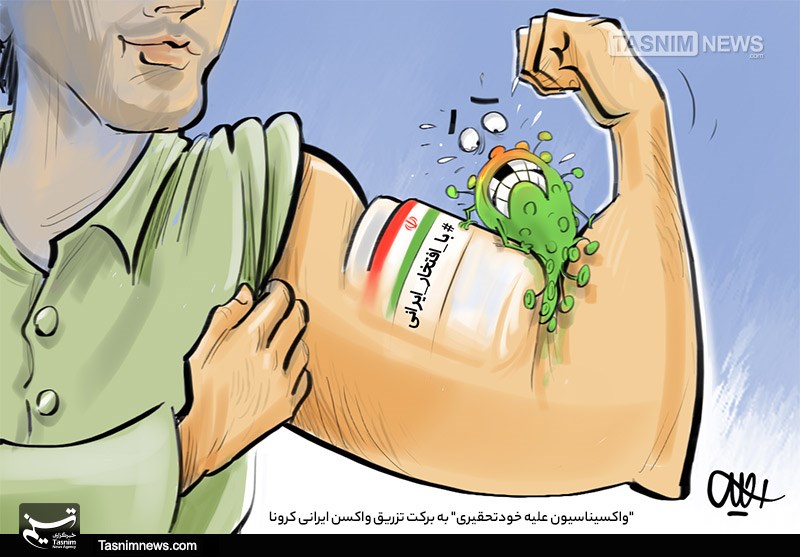 کاریکاتور/ "واکسیناسیون علیه خودتحقیری" به برکت تزریق واکسن ایرانی کرونا