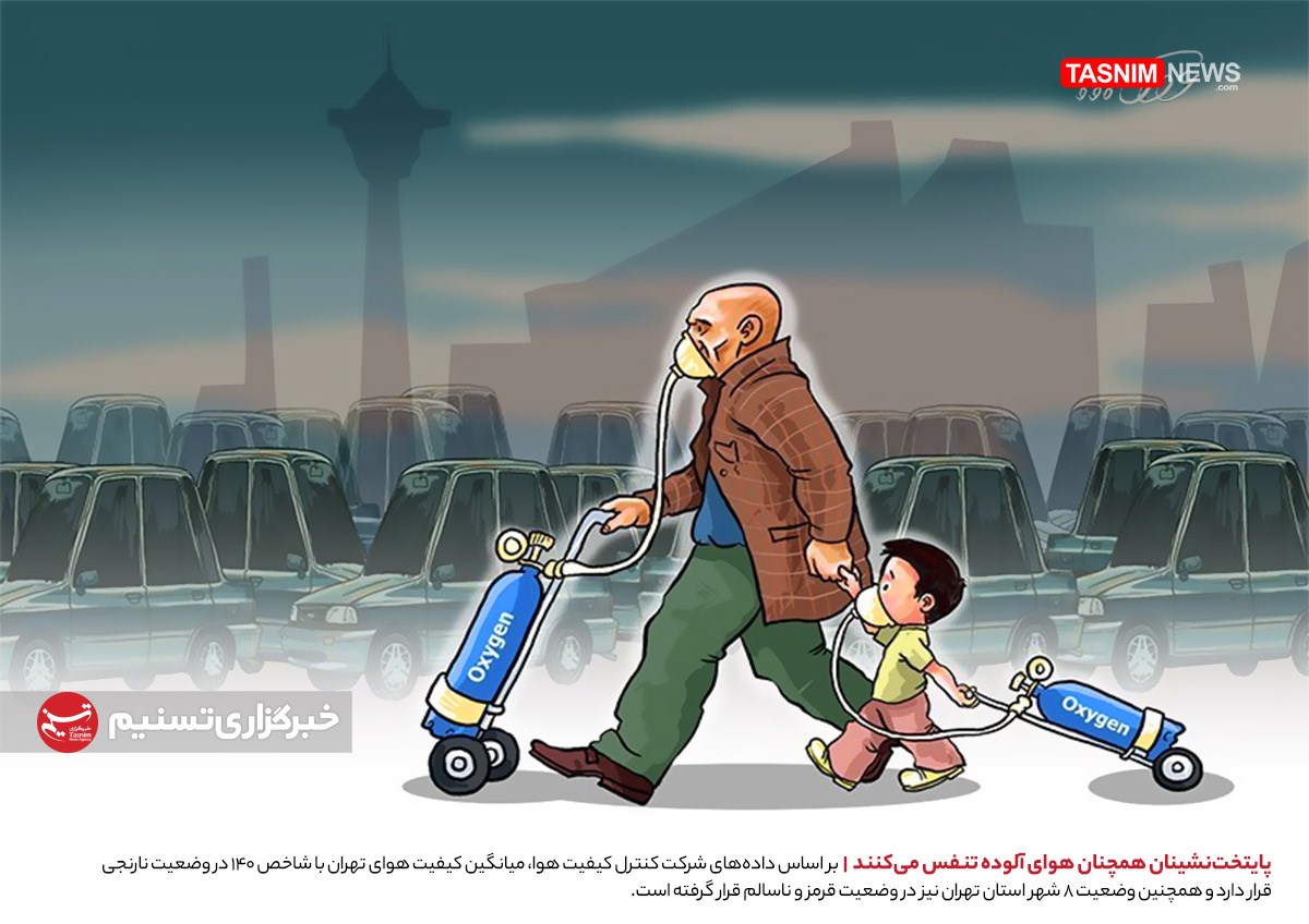 کاریکاتور/ پایتختنشینان همچنان هوای آلوده تنفس میکنند