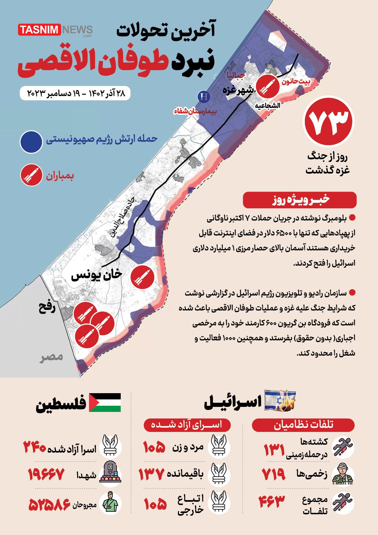 اینفوگرافیک/ 73 روز از جنگ غزه / آخرین تحولات نبرد طوفان الاقصی