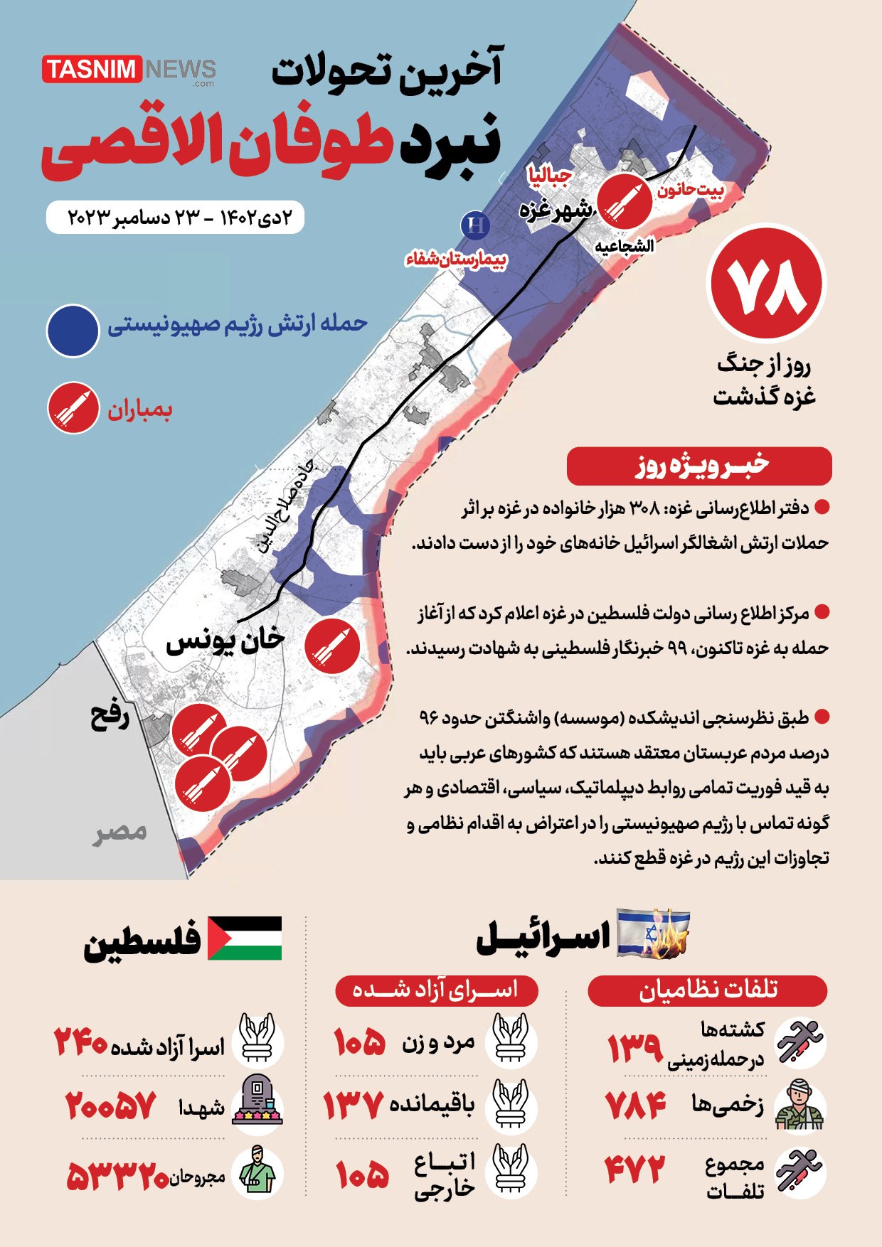 اینفوگرافیک/ 78 روز از جنگ غزه / آخرین تحولات نبرد طوفان الاقصی
