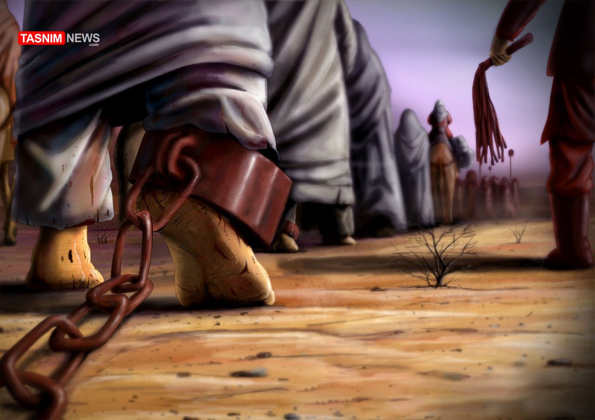 ابن زیاد پس از فرستادن سر امام حسین(علیه السلام)، اسراء را در 15 محرم با شمر ذی الجوشن و مخفر بن ثعلبه عائذی به شام فرستاد و به دست و پا و گردن مبارک امام سجاد(علیه السلام) زنجیر انداخت و اسراء را سوار بر شتر بیجهاز نمود. آن شقى، اهلبیت عصمت و طهارت را مانند اسیران کفار، دیار به دیار با ذلت و انکسار طوری که مردم به تماشاى آنها مىآمدند، به شام آورد.