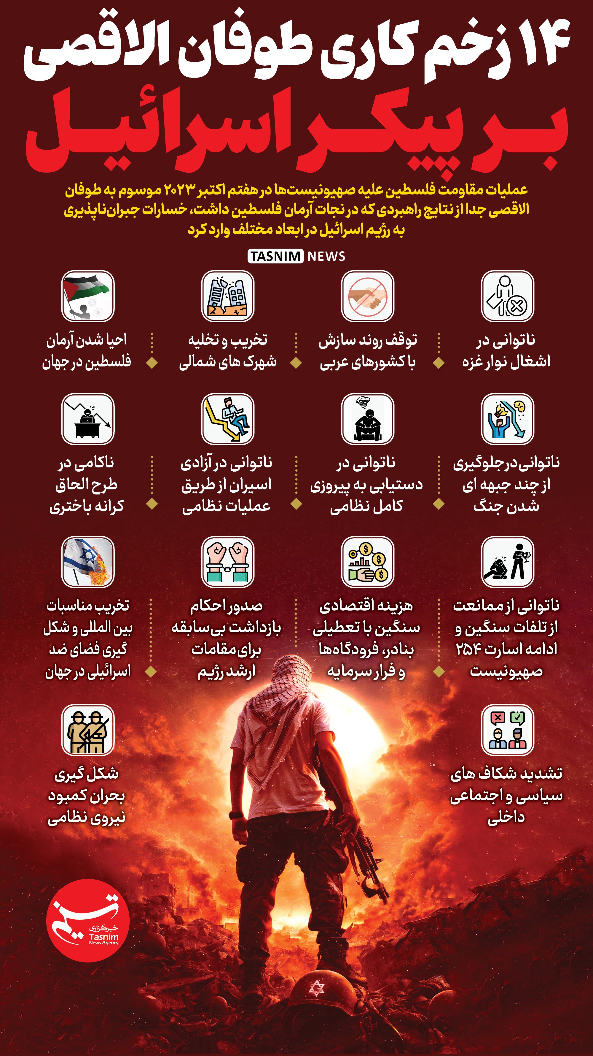 اینفوگرافیک/ 14 زخم کاری طوفان الاقصی بر پیکر اسرائیل