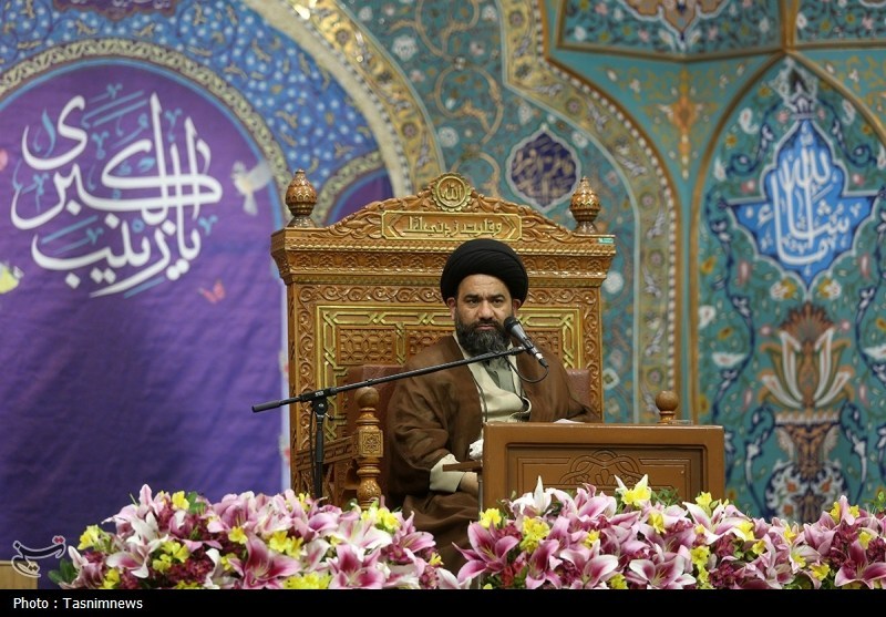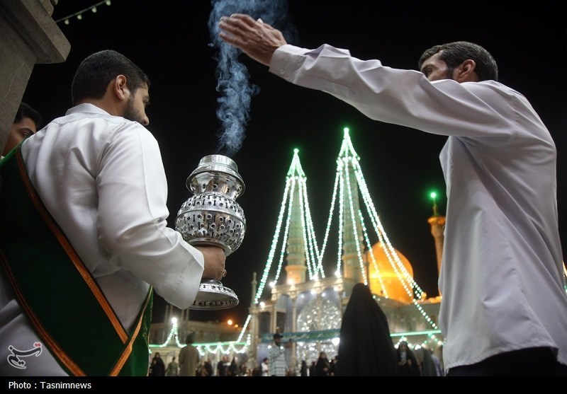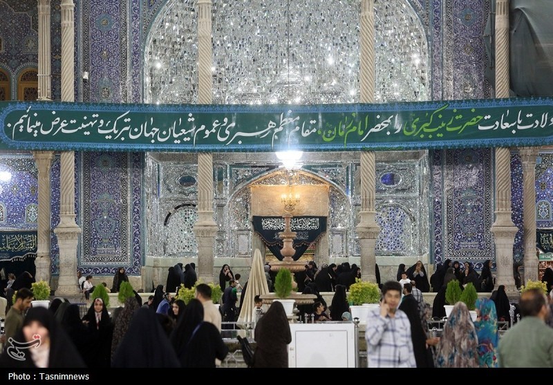 حرم مطهر حضرت فاطمه معصومه سلام الله علیها در شام میلاد حضرت زینب کبری)س( شاهد حضور پرشور زائرانی بود که در فضای معنوی حرم مطهر حضور یافته و در مراسم باشکوه جشن با سخنرانی حجتالاسلام سید حسین آقامیری و مدیحهسرایی عل اکبر حائری شرکت کردند.