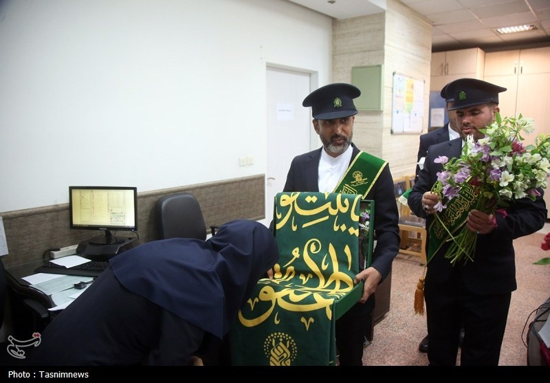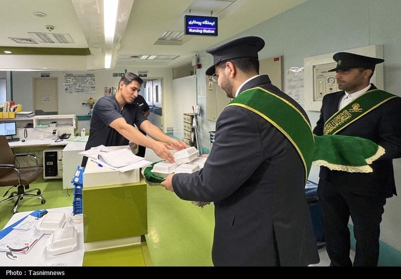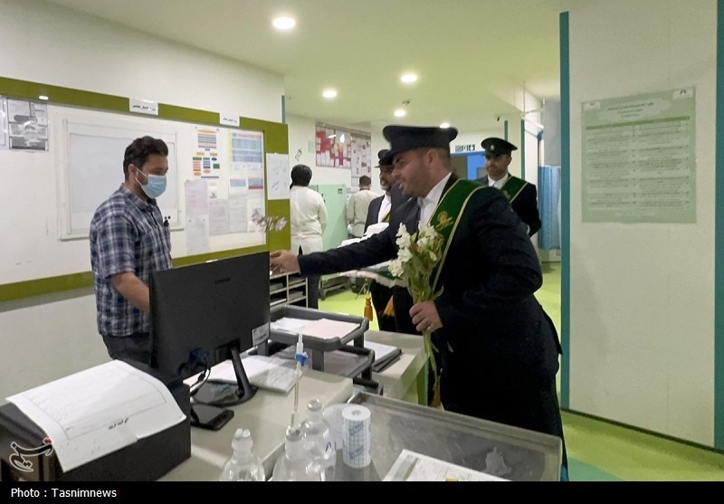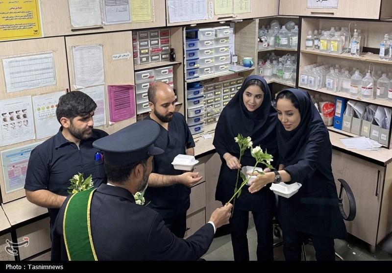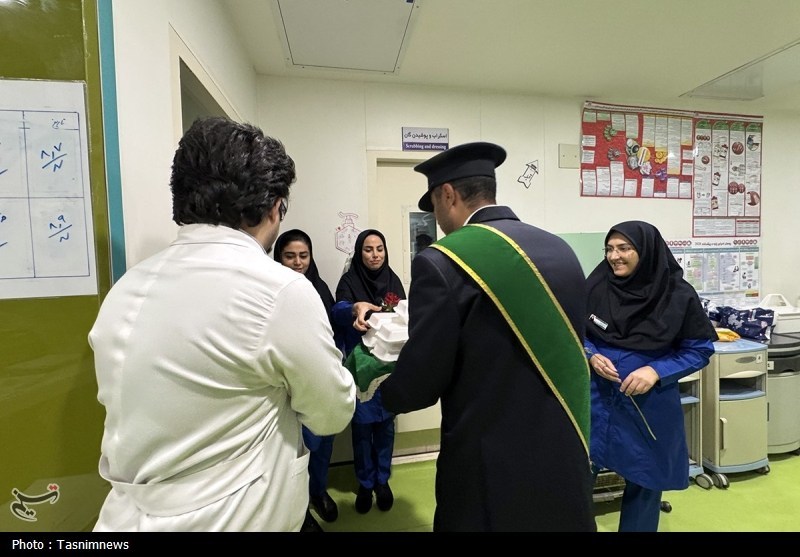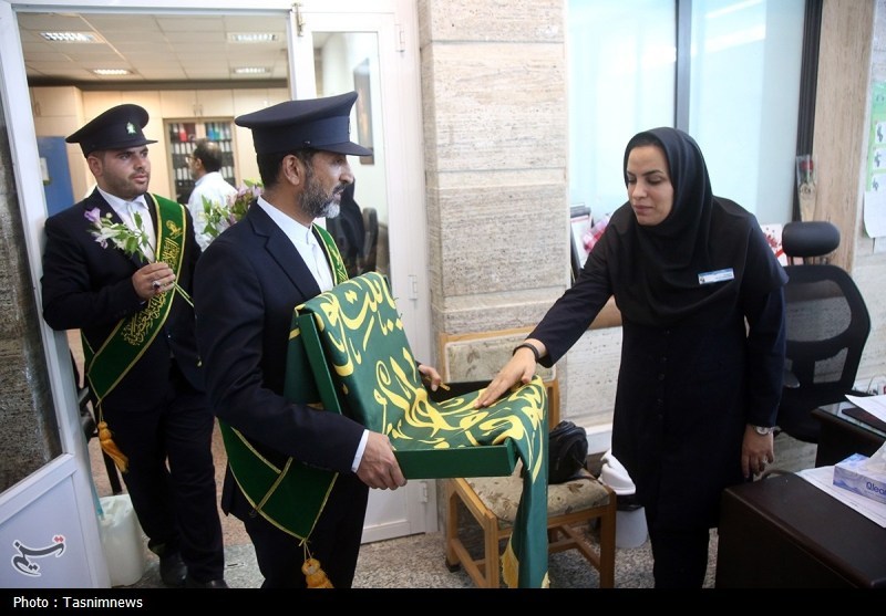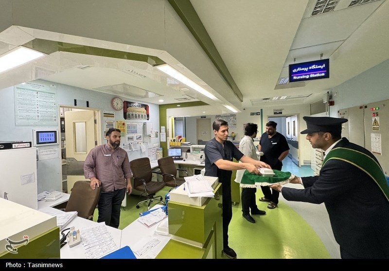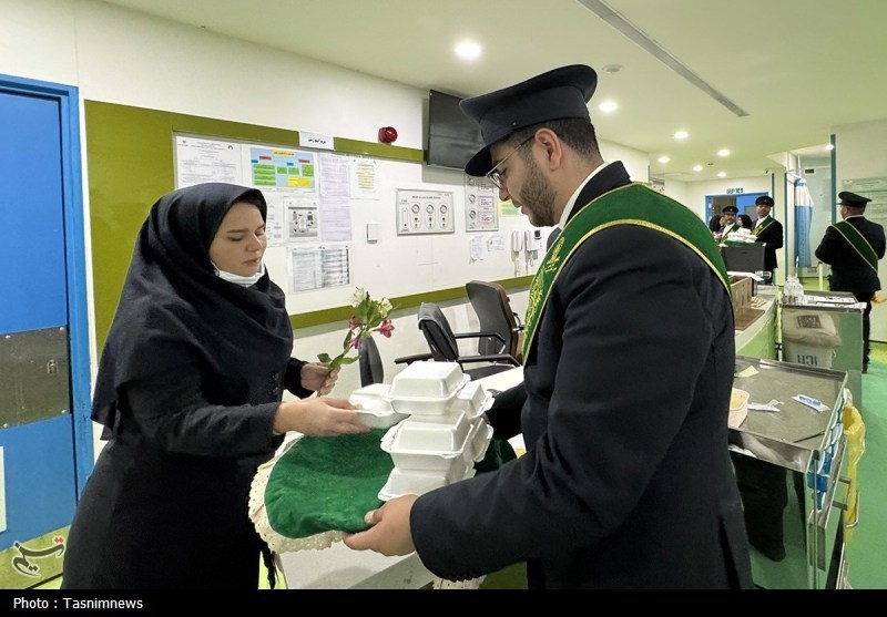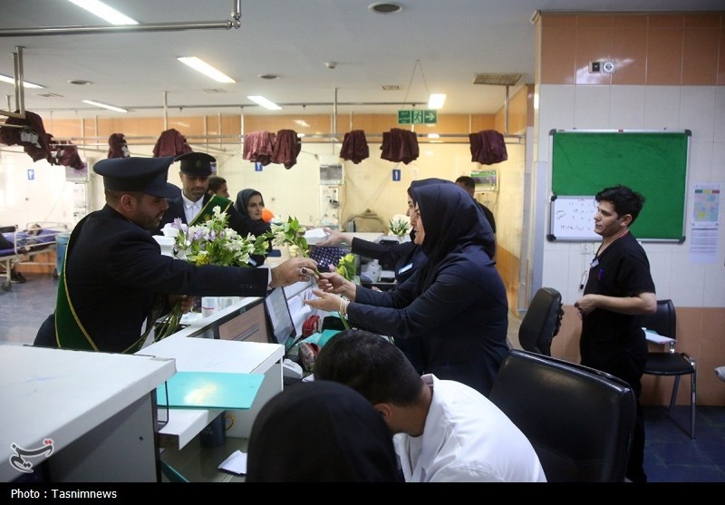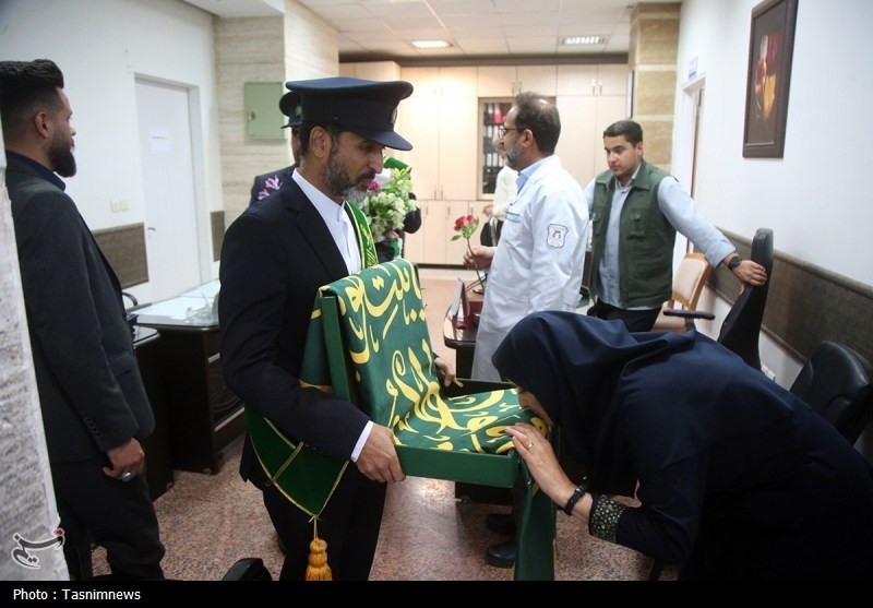 جمعی از خادمان حرم مطهر حضرت فاطمه معصومه)س( به همراه پرچم متبرک این آستان مقدس به مناسبت سالروز میلاد حضرت زینب کبری)س( و روز پرستار با حضور در بیمارستانهای قم با اهدای گل و توزیع کیک میلاد حضرت زینب)س( از پرستاران تقدیر کردند.