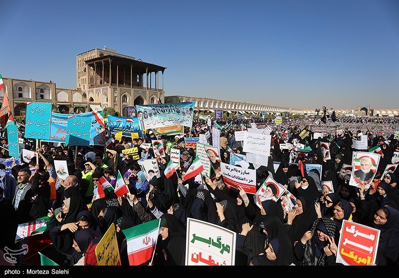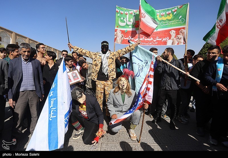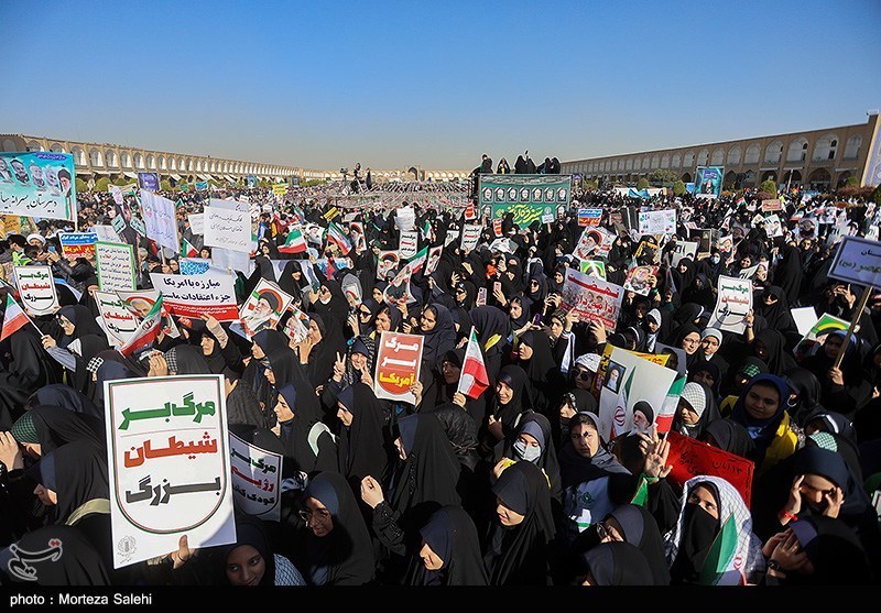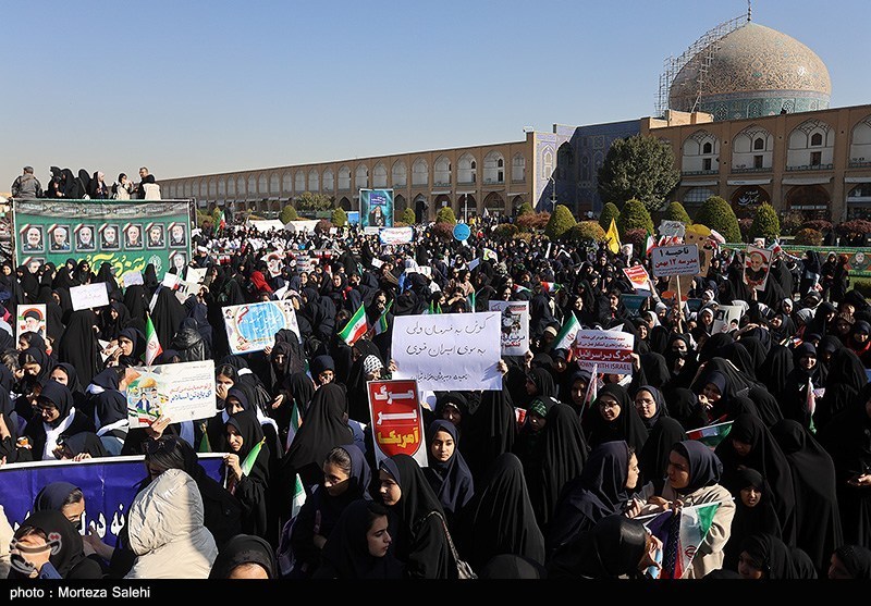 مراسم روز ملی استکبارستیزی در اصفهان و بجنورد همزمان با سراسر کشور با حضور باشکوه و گسترده اقشار مختلف مردم برگزار شد.