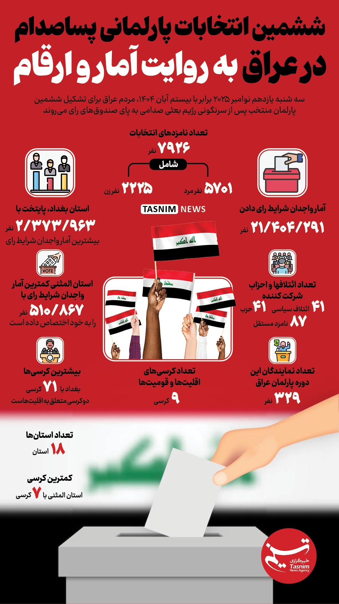 اینفوگرافیک/ ششمین انتخابات پارلمانی پساصدام در عراق به روایت آمار و ارقام