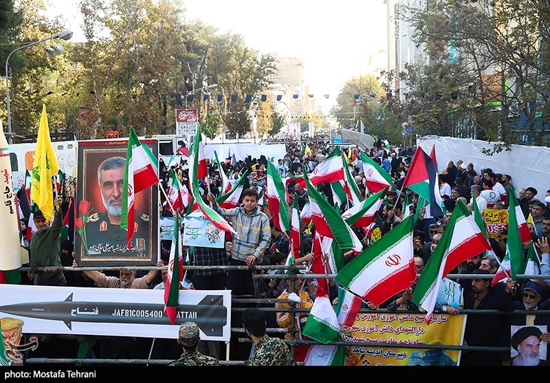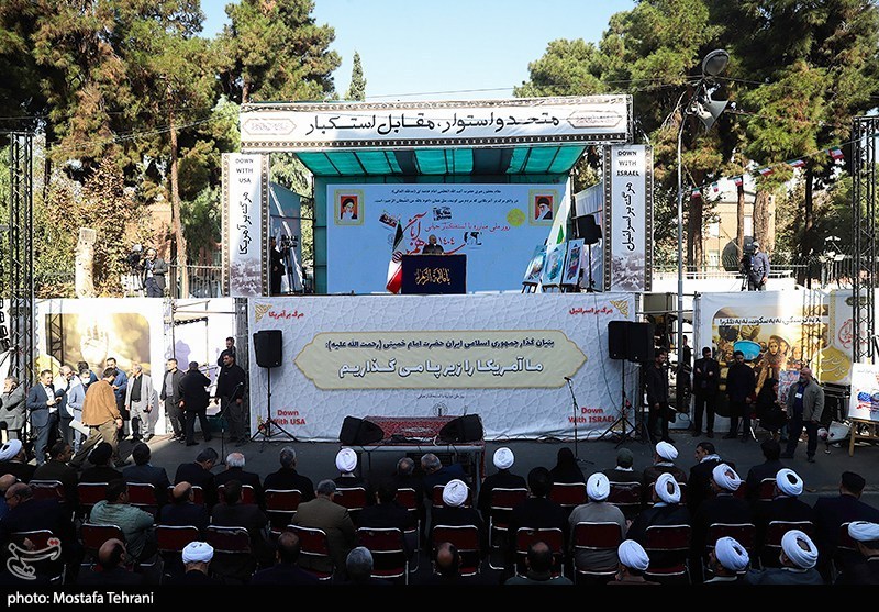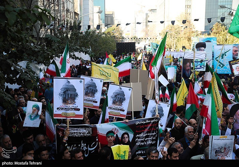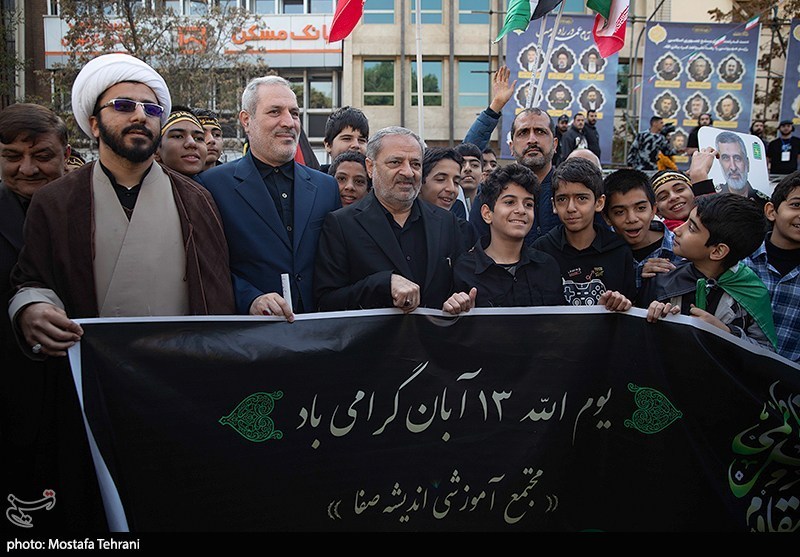راهپیمایی روز 13 آبان روز ملی مبارزه با استکبار جهانی امروز (سهشنبه) از ساعت 9 صبح از میدان فلسطین تهران به سمت لانه جاسوسی و محل برگزاری مراسم در خیابان طالقانی برگزار شد.