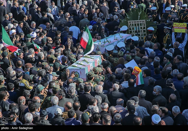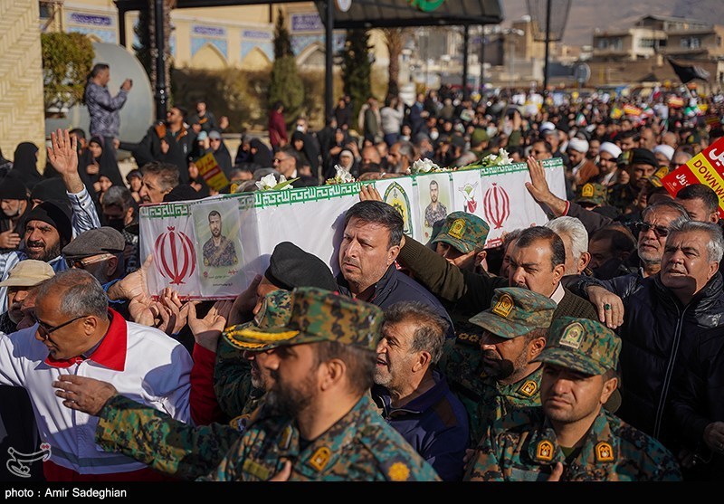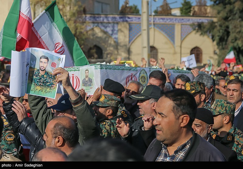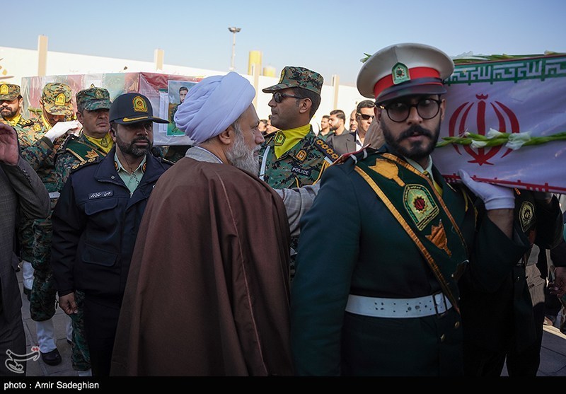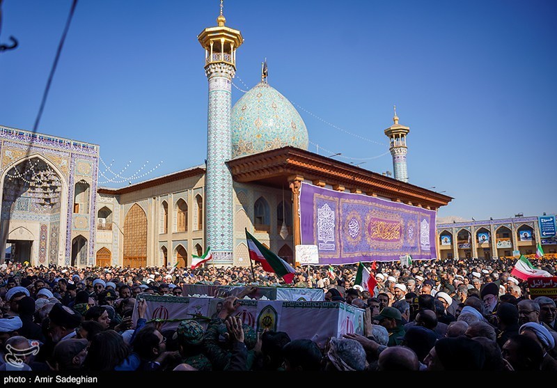 تشییع پیکر سه شهید مدافع امنیت در حرم مطهر شاهچراغ(ع)