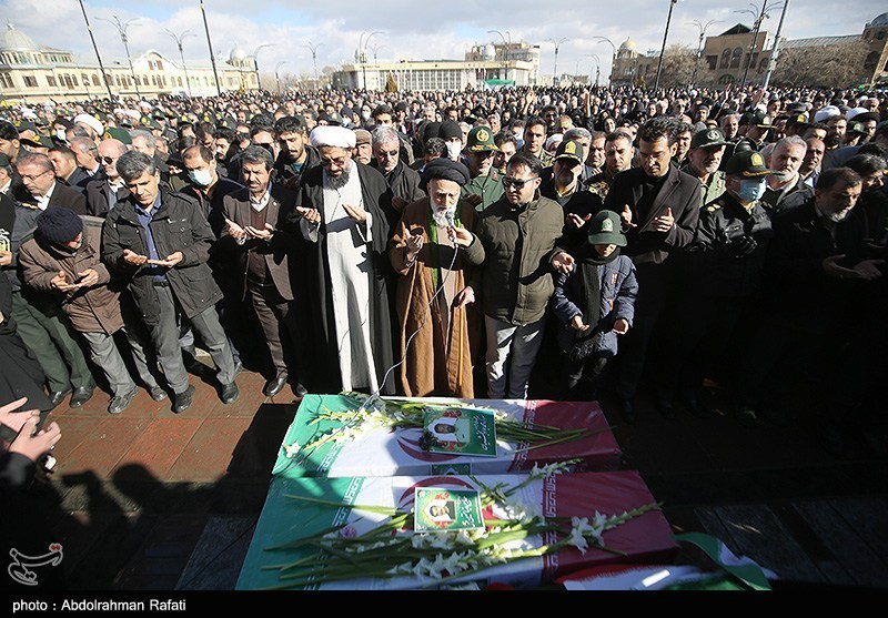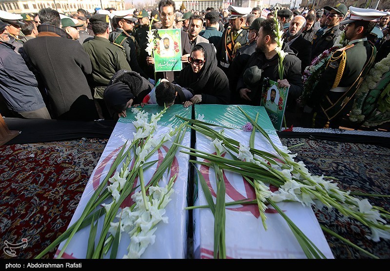 مراسم تشییع پیکر شهید سرگرد محمد جواد بخشیان و شهید حاج رضا متین منش از شهدای مدافع امنیت که در حمله اغتشاشگران به فیض عظیم شهادت نائل امدند صبح امروز در میدان امام خمینی (ره) همدان برگزار شد.