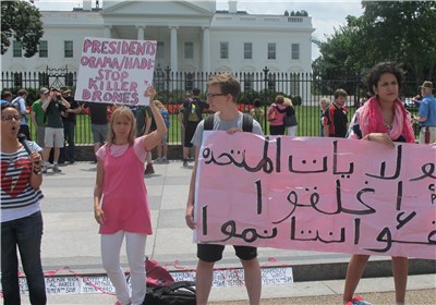به گزارش خبرنگار بینالملل خبرگزاری تسنیم مستقر در آمریکا؛ در اول آگوست راس ساعت ١ بعد از ظهر همزمان با دیدار و نشست رییس جمهور جدید یمن منصور هادی و اوباما ،دهها نفر از مردم واشنگتون در اعتراض به زندانی نگه داشتن مردم بیگناه یمن در زندان گوانتانامو و استفاده از پهپادها در کشتار بسیاری از مسلمانان در این کشور مقابل ساختمان کاخ سفید دست به تظاهرات زدند.