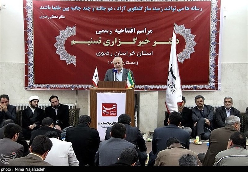 مدیرعامل خبرگزاری تسنیم با بیان "امروز دوازدهمین دفتر استانی خبرگزاری تسنیم را در مشهد مقدس افتتاح میکنیم" گفت: نگاه ما در تسنیم کمک و تقویت جبهه رسانه انقلاب است و آمادهایم ظرفیتی به ظرفیت رسانهای کشور در مقابله با جنگ نرم اضافه کنیم.