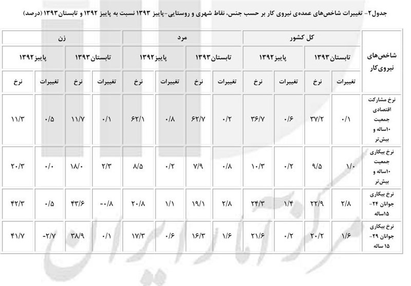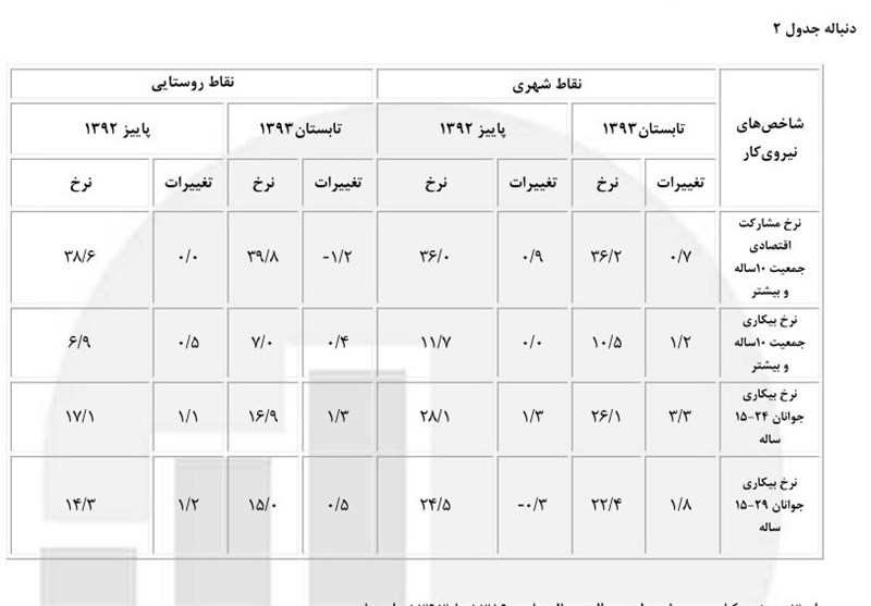 * مقایسه بیکاری در سال 92 و 93/ بیکاری جوانان تشدید شد + جدول