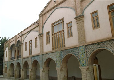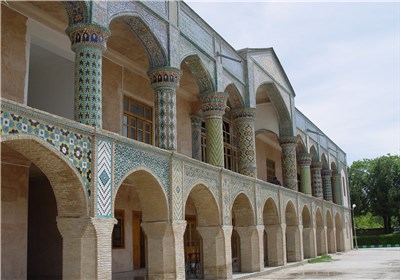 هر دوطبقه بنا دارای ایوان است که ایوانها در ضلع شمالی بهصورت دو ایوان جانبی در طرفین جداره ضلع شمالی در طبقه اول وایوان سراسری در طبقه همکف و در ضلع جنوبی بهصورت دو ایوان در هر دوطبقه میباشد که از ویژگیهای بارز اثر وجود ستونهای سرتاسر کاشیکاری شده در نمای جنوب میباشد که تنوع نقوش، طرحها و نقشمایههای بکار گرفتهشده در تزئینات بنا بهویژه کاشیهای ضلع جنوبی را میتوان نام برد.