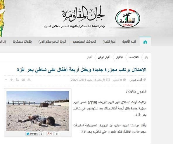 این تصویر مربوط به جنایت صهیونیست ها علیه کودکان غزه است که در سایت لجان المقاومه منتشر شده بود