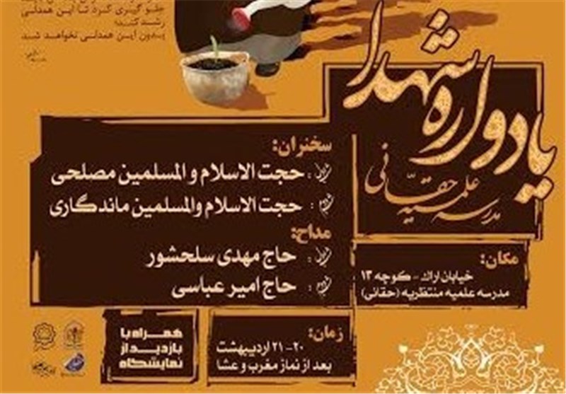 خبرگزاری تسنیم: یادواره شهدای مدرسه علمیه حقانی با حضور حجت الاسلام حیدر مصلحی در روز‌ها 20 و 21 اردیبهشت ماه با حضور طلاب و روحانیون بعد از نماز مغرب و عشاء در قم برگزار می‌شود.