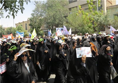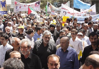 راهپیمایی روز جهانی قدس در سومین حرم اهل بیت(ع) با تجمع در میدان 15 خرداد و پس از قرائت قرآن کریم آغاز شد و مردم ولایتمدار و روزهدار شیراز با سردادن شعارهای "مرگ بر اسرائیل" ، "مرگ بر آل سعود" و "مرگ بر آمریکا " حرکت خود را به سمت حرم مطهر حضرت شاهچراغ(ع) آغاز کردند.