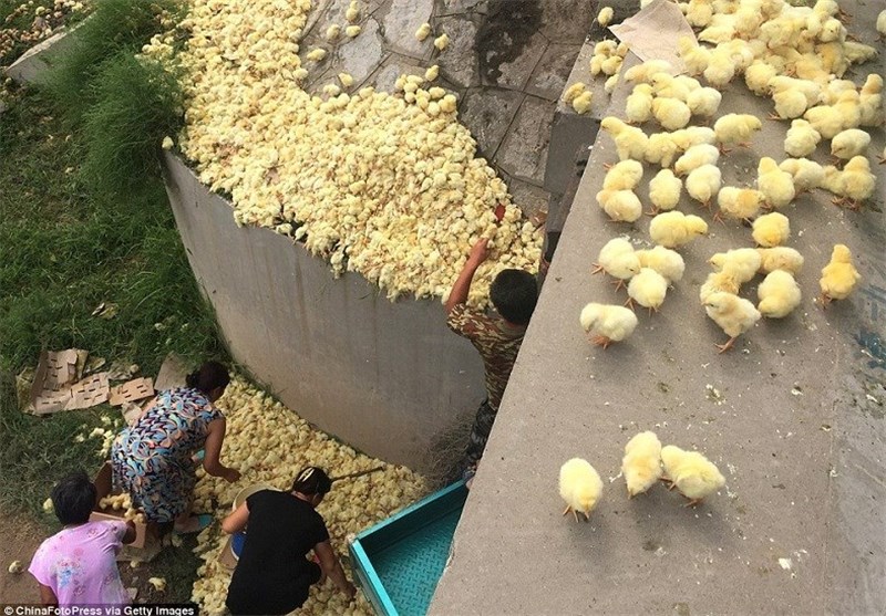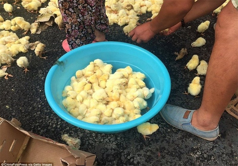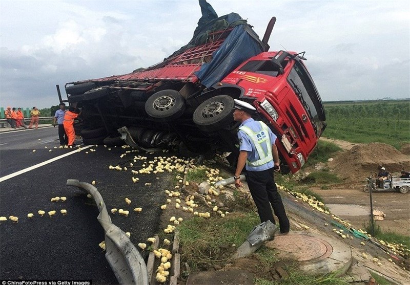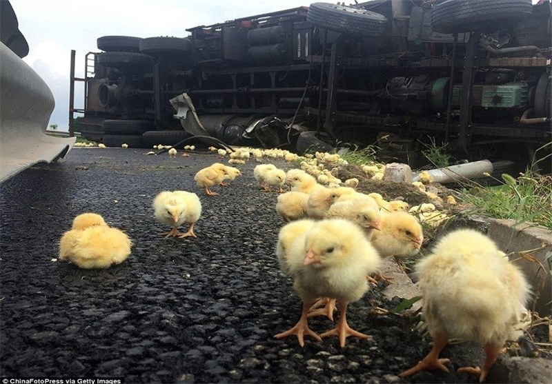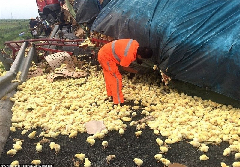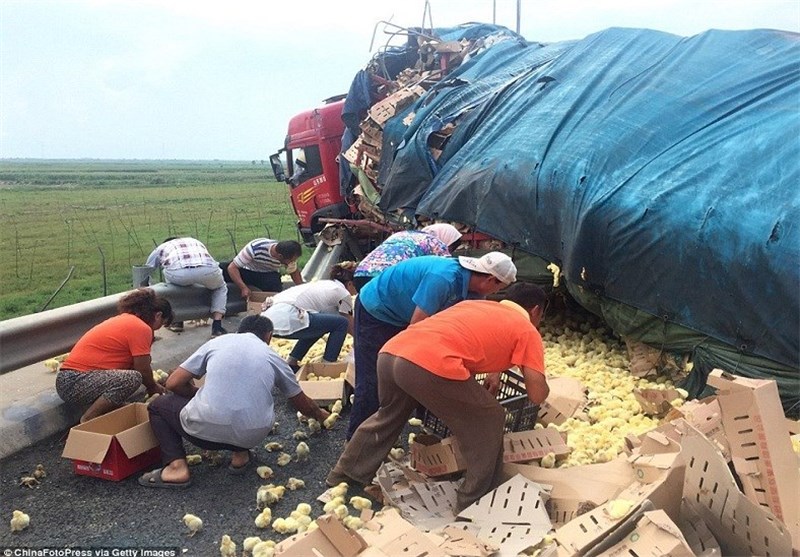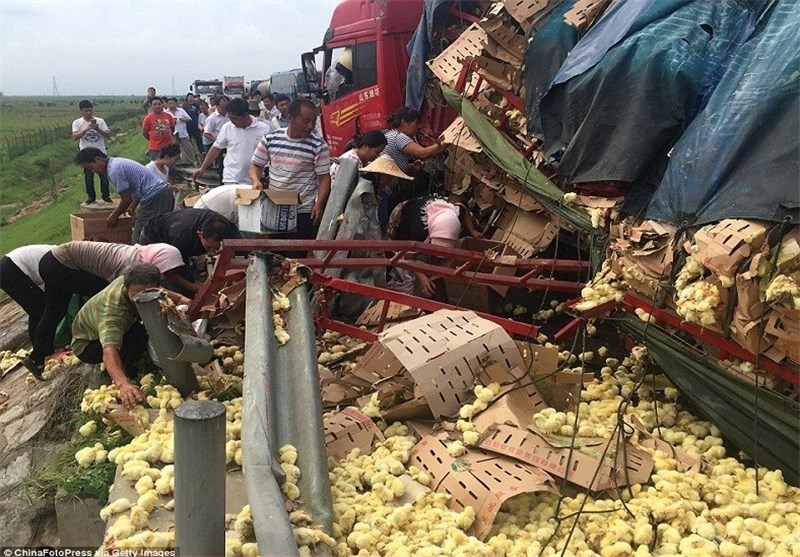 غارت 10 هزار جوجه یک روزه پس از واژگونی کامیونی در چین + عکس
