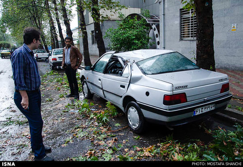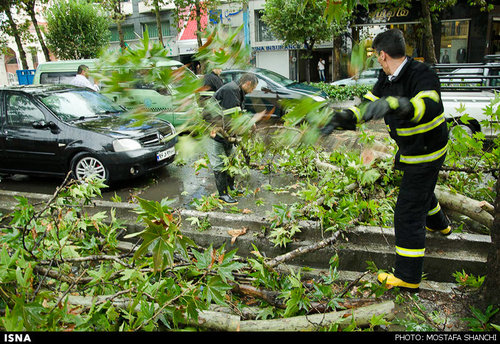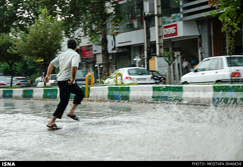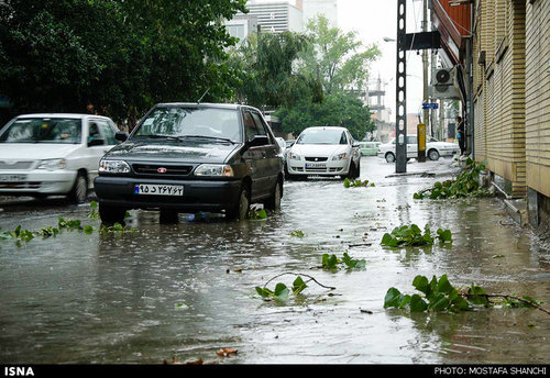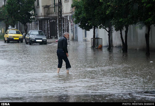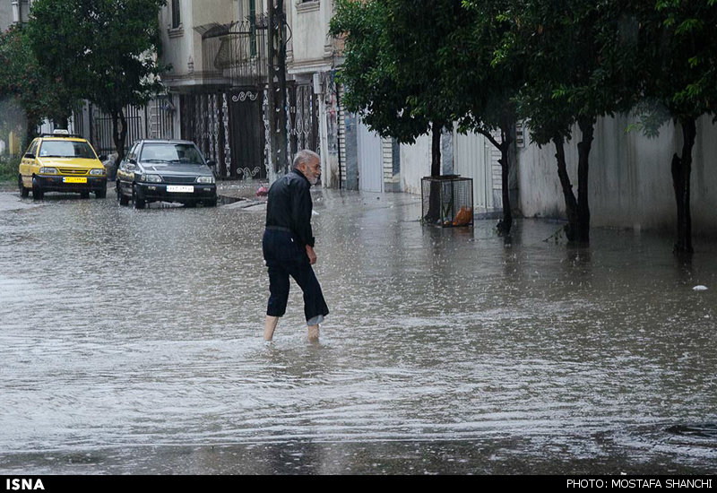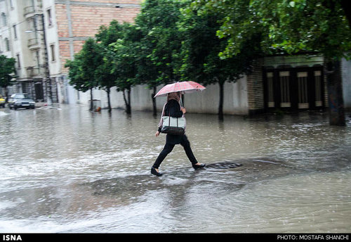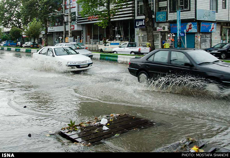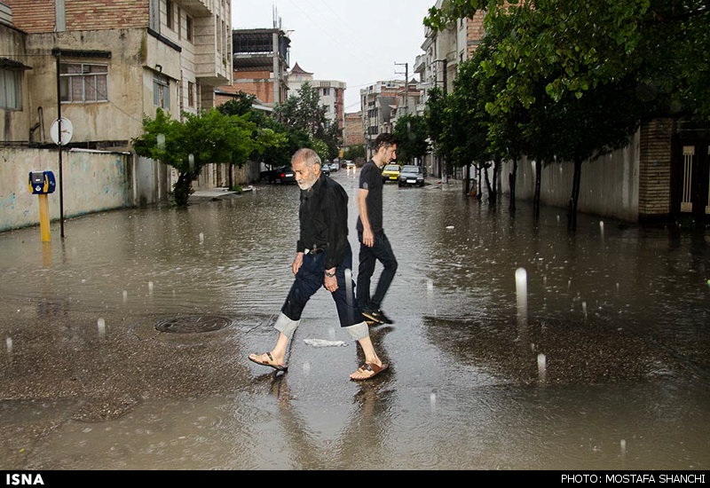 تصاویر بارش شدید باران و آب گرفتگی معابر ساری در ادامه می آید .