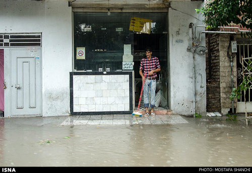 عکس/بارش شدید باران و آب گرفتگی معابر ساری