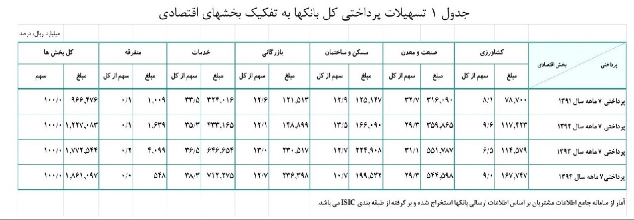به گزارش خبرگزاری تسنیم به نقل از روابط عمومی بانک مرکزی ، سهم تسهیلات پرداختی بانکها به بخش صنعت و معدن طی 7 ماهه سال جاری 544.6 هزار میلیارد ریال (معادل 29.3 درصد) بوده که نسبت به 7 ماهه سال گذشته 7.2 هزار میلیارد ریال (معادل 1.3 درصد) کاهش داشته است.
